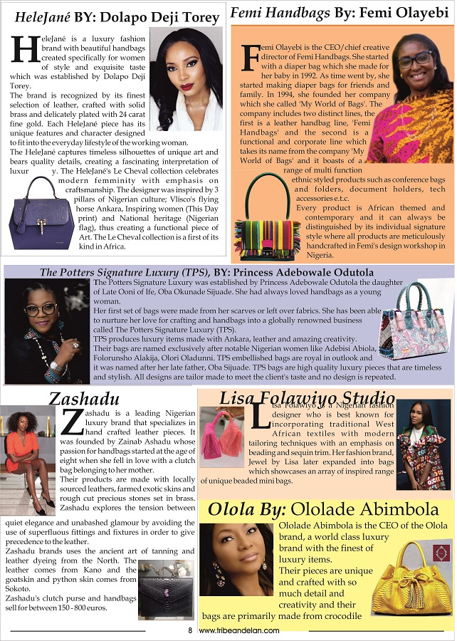 An beautifully crafted bag depicts a lady and adds value to her personality as well as style . A “Must Have ” fashion accessory in fashion, women can never resist an arm candy with attitude and character , spun from quality and creativity . The handbag industry is growing popularly around the world, and the handbag designers are now in demand. Some of our Nigerian handbag brands are now known globally for their intricate designs with inspiration drawn from indigenous realities.
