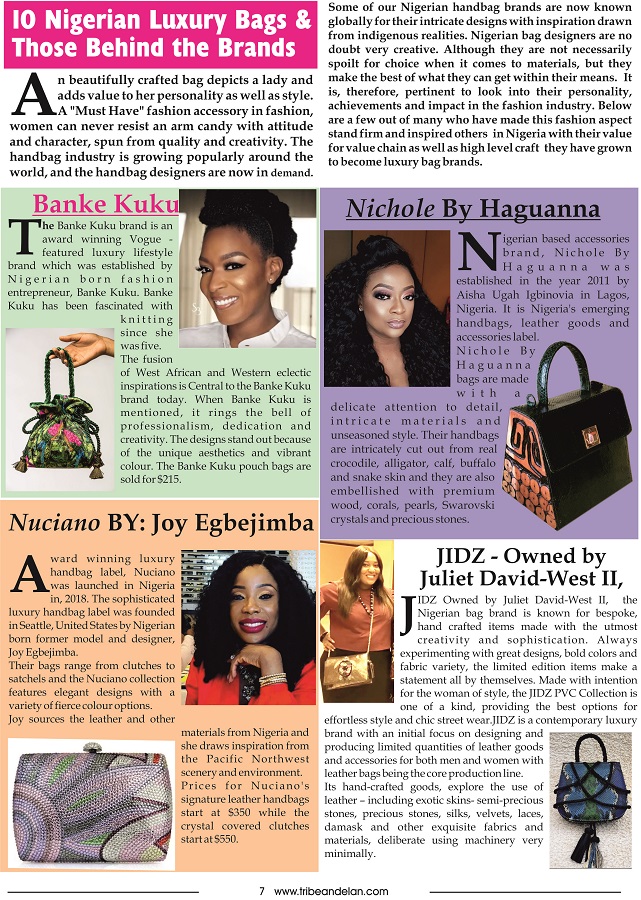 An beautifully crafted bag depicts a lady and adds value to her personality as well as style . A “Must Have ” fashion accessory in fashion, women can never resist an arm candy with attitude and character , spun from quality and creativity . The handbag industry is growing popularly around the world, and the handbag designers are now in demand. Some of our Nigerian handbag brands are now known globally for their intricate designs with inspiration drawn from indigenous realities.
