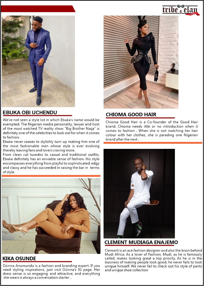 CHIOMA GOOD HAIR- is a Co-founder of the Good Hair brand. Chioma needs ittle or no introduction when it comes to fashion . When she is not matching her hair colour with her clothes, she is parading one Nigerian brand after the next .