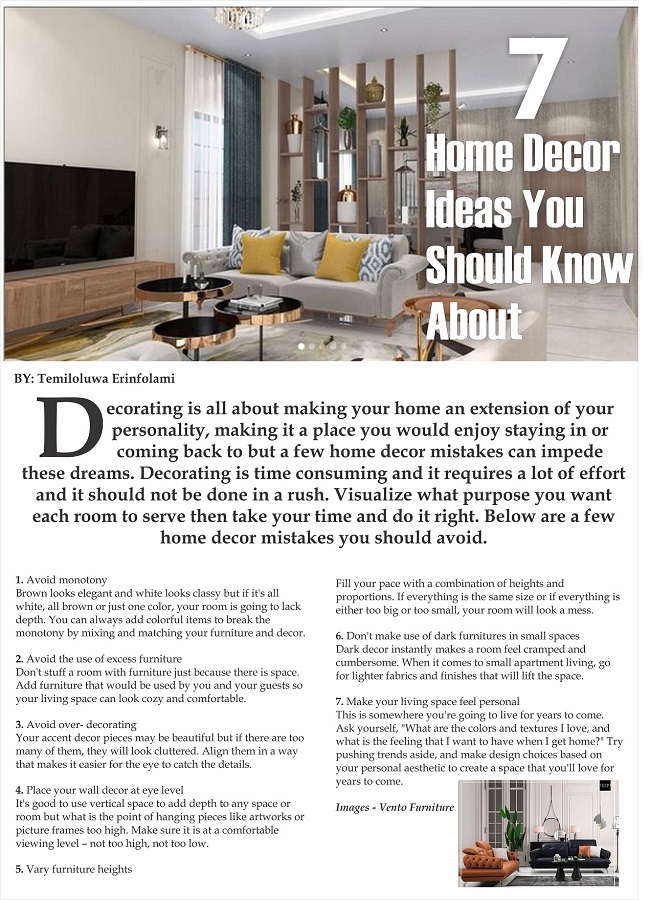 Decorating is all about making your home an extension of your personality, making it a place you would enjoy staying in or coming back to but a few home decor mistakes can impede these dreams. Decorating is time consuming and it requires a lot of effort and it should not be done in a rush. Visualize what purpose you want each room to serve then take your time and do it right. Below are a few home decor mistakes you should avoid.