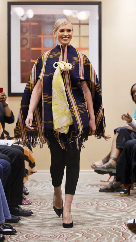 There was a generous use different fabrics from around the African continent .exquisite textiles such as the kanga and leso from Mombasa in Kenya ,the payne Boulay from Ivory Coast ,Asò oke ,adire and akwete from Nigeria ,the Kente and Kente oke from ghana ,including fabrics from Mozambique and ankara textiles.