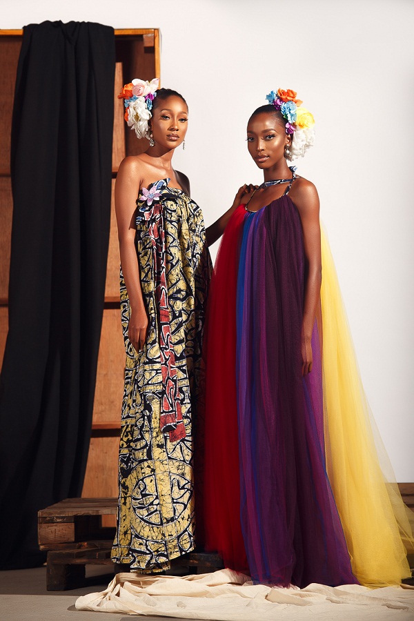 For this collection, the designer takes the brand on a journey of a culture merger between western and south eastern Nigeria. The technique of hand dye and batik which originates from western Nigeria and the Nsibidi language symbols which are used in the hand dye originally from south eastern Nigeria are both employed. The print portrays Love and Unity as these are Nsibidi signs used. The designer’s creative license is visible in the collection as there is a balance between modern trends and cultural inspiration.