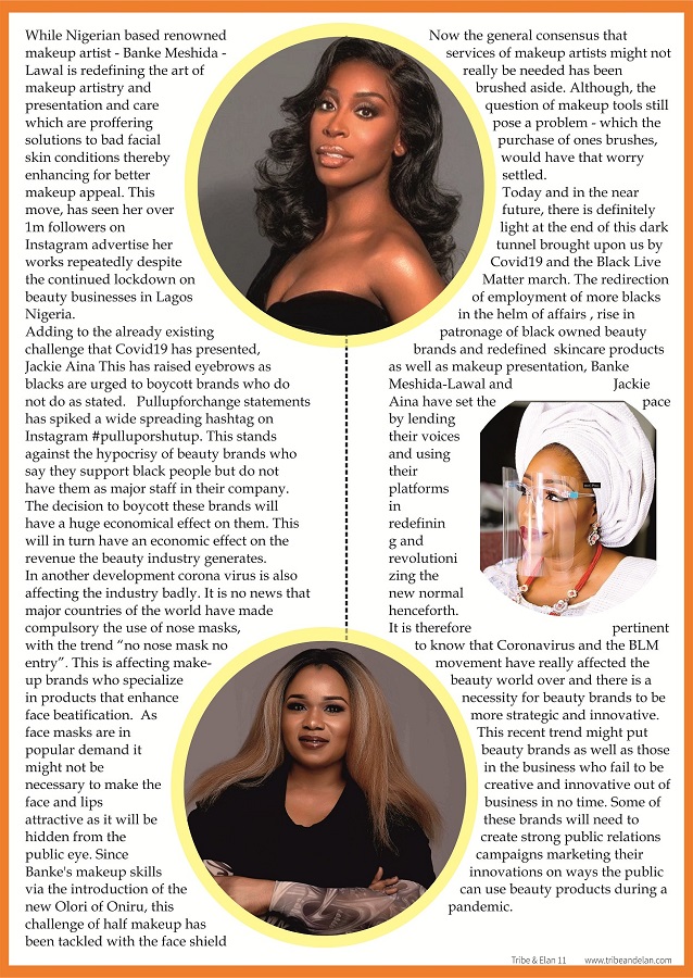 Today and in the near future, there is definitely light at the end of this dark tunnel brought upon us by Covid19 and the Black Live Matter march . The redirection of employment of more blacks in the helm of affairs , rise in patronage of black owned beauty brands and redefined skincare products as well as makeup presentaion , Banke Meshida – Lawal and Jackie Aina have set the pace by lending their voices and using their platforms in redefining and revolutionizing the new normal henceforth.