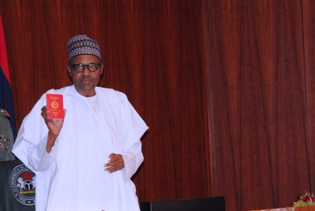 Buhari and vice president Yemi Osinbajo underwent their biometrics capturing by the Nigeria Immigration Service (NIS) and were presented with their diplomatic passports by the Minister of Interior, Abdulrahman Dambazau, and the Comptroller General of NIS, Mohammed Babandede.