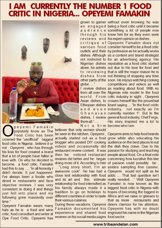 I Am Currently the Number 1 Food Critic in Nigeria …. Opeyemi Famakin