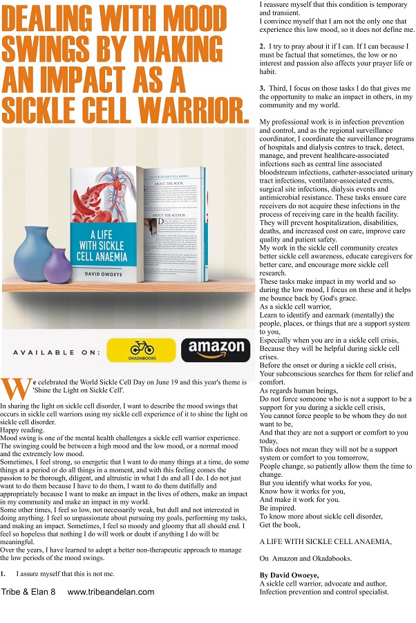 In sharing the light on sickle cell disorder, I want to describe the mood swings that occurs in sickle cell warriors using my sickle cell experience of it to shine the light on sickle cell disorder.