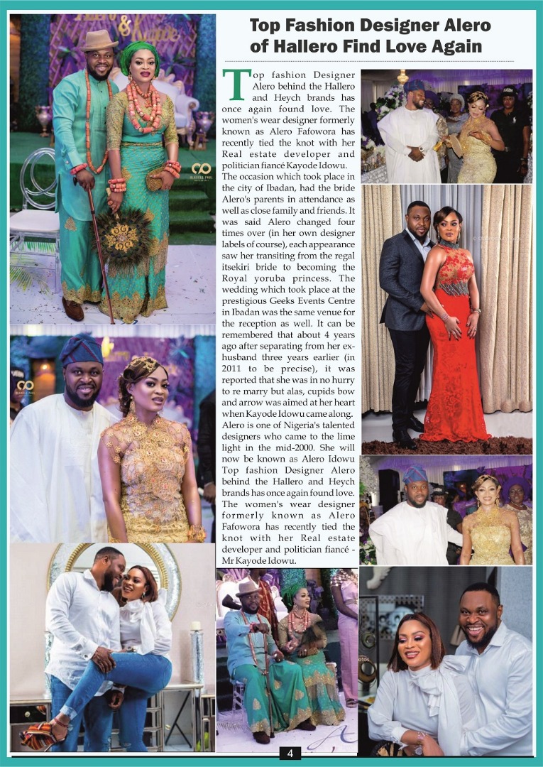 Top fashion Designer – Alero behind the Hallero and Heych brands has once again found love. The women’s wear designer formerly known as Alero Fafowora has recently tied the knot with her Real estate developer and politician fiancé – Mr Kayode Idowu.