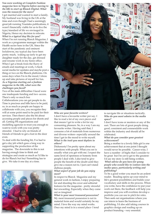 You were working at Complete Fashion magazine here in Nigeria before moving to the UK to start up Blanck Digital. What was the reason for the move?