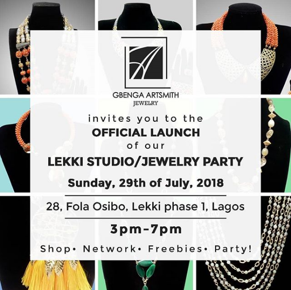 Nigeria’s top Celebrity Jewelry designer, Gbenga Arts Smith, Ceo and Creative director, Artsmith Collection is opening a new store in the heart of Lekki.