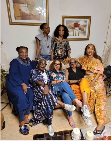….”Sisters from another mother sitting with Birthday girl @josbazuayejulie…and my blood sisters-Grace and Omome standing behind us. There is 45yrs of friendship between us five sitting…bola ayeni, pat faniran, ayona trimnell, jos bazuayejulie and myself. We have been friends since our mid teens! May we have cause to celebrate more milestones in years to come.….