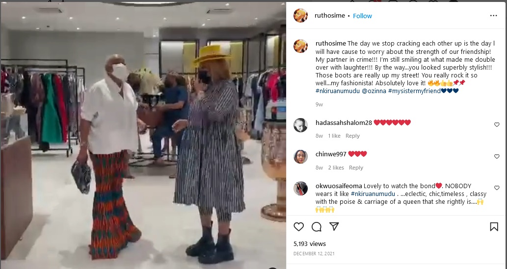 ……The day we stop cracking each other up is the day l will have cause to worry about the strength of our friendship! My partner in crime!!! I’m still smiling at what made me double over with laughter!!! By the way…you looked superbly stylish!!! Those boots are really up my street! You really rock it so well…my fashionista! Absolutely love it! #nkiru anumudu
