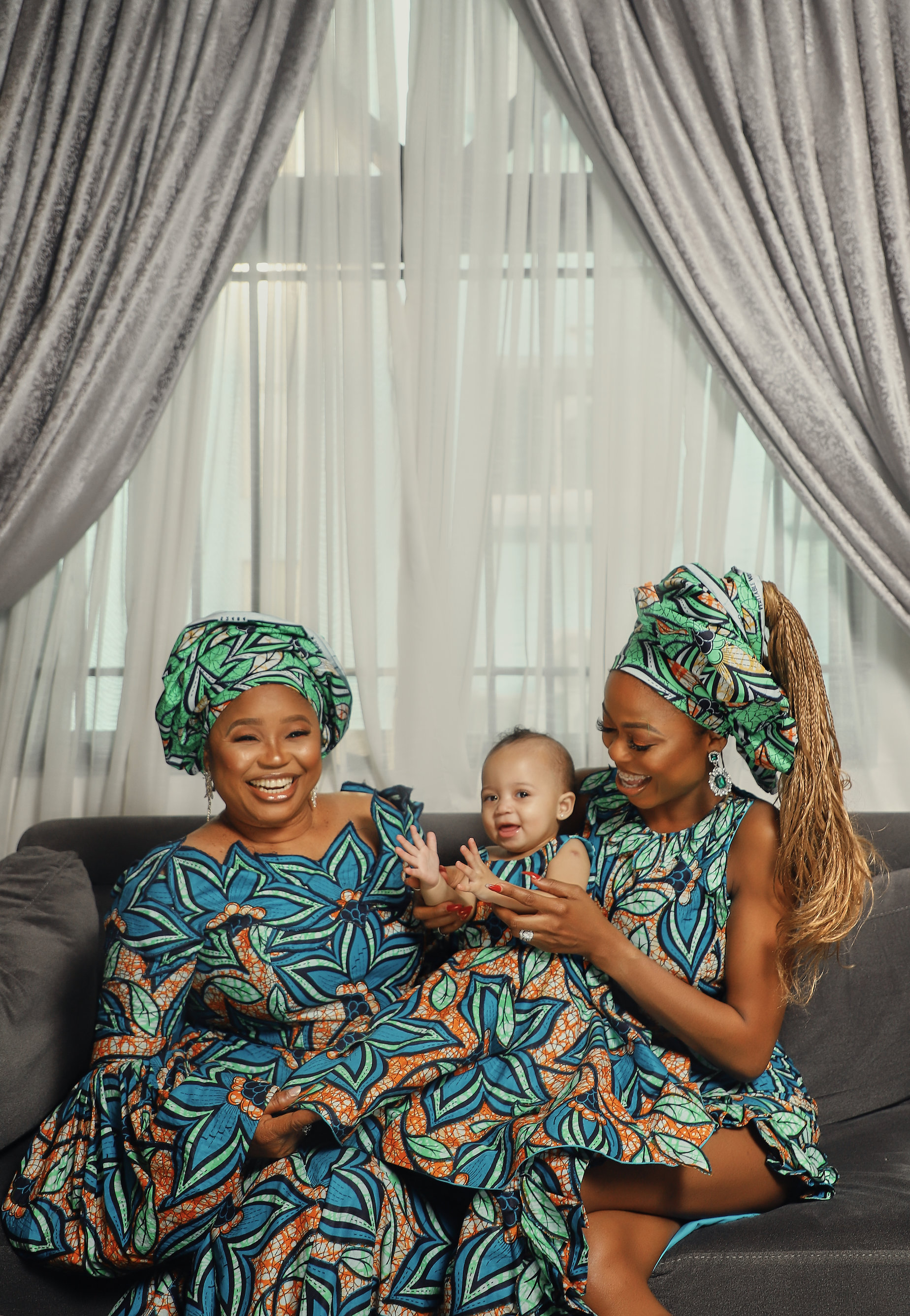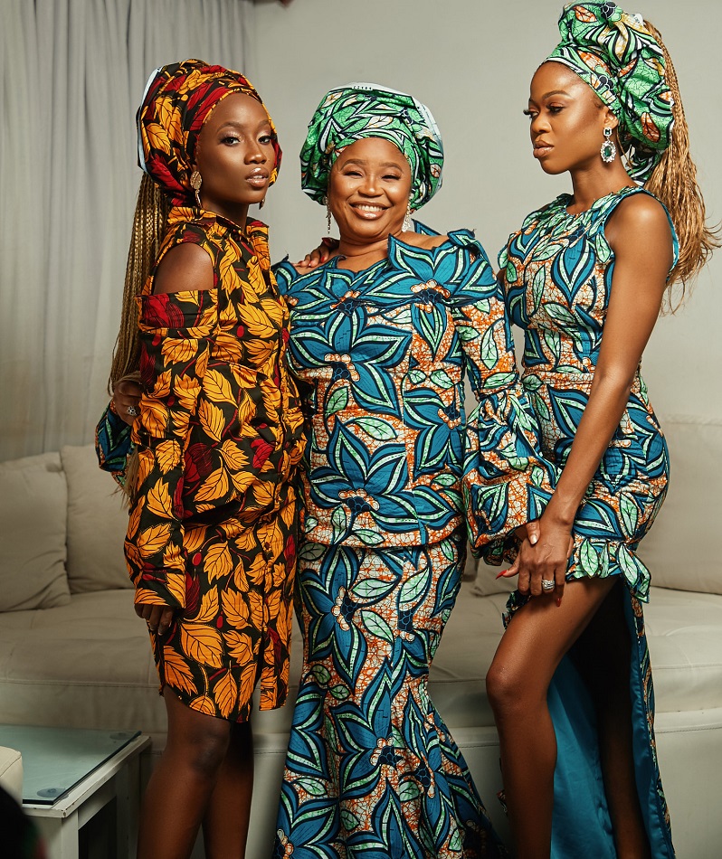 In this iconic photoshoot for Glam Africa magazine, Juliana Olayode, Tania Omotayo, Soliat Bada and Mariam Adeyemi have come together with their families to discuss those special moments they share with their family in African print.