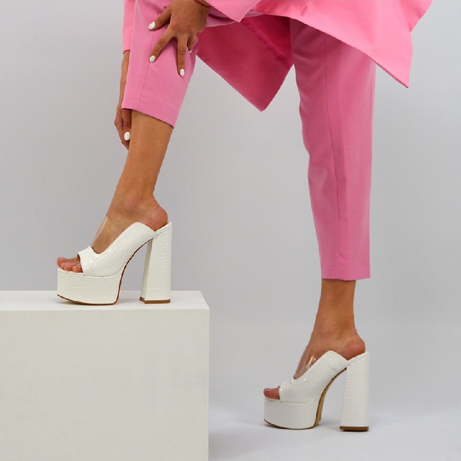 THE RIGHT PAIR of platform shoes can literally elevate your look, giving you up to an extra 2 inches of height over single-sole heels—and soaring confidence to match. The stacked sole delivers height with less stress on the ball of the foot as well. It’s not quite a sneaker, but as heels go, it’s relatively comfortable. You literally carry yourself differently in platforms versus normal high heels, You don’t walk. You stride.