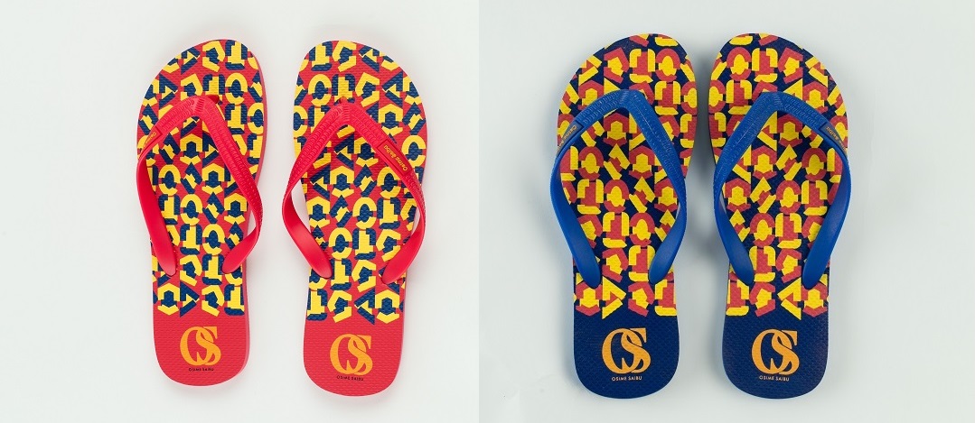 The collection also features flips flops and swims suits from the Osime Saibu lifestyle brand for a more varied look.