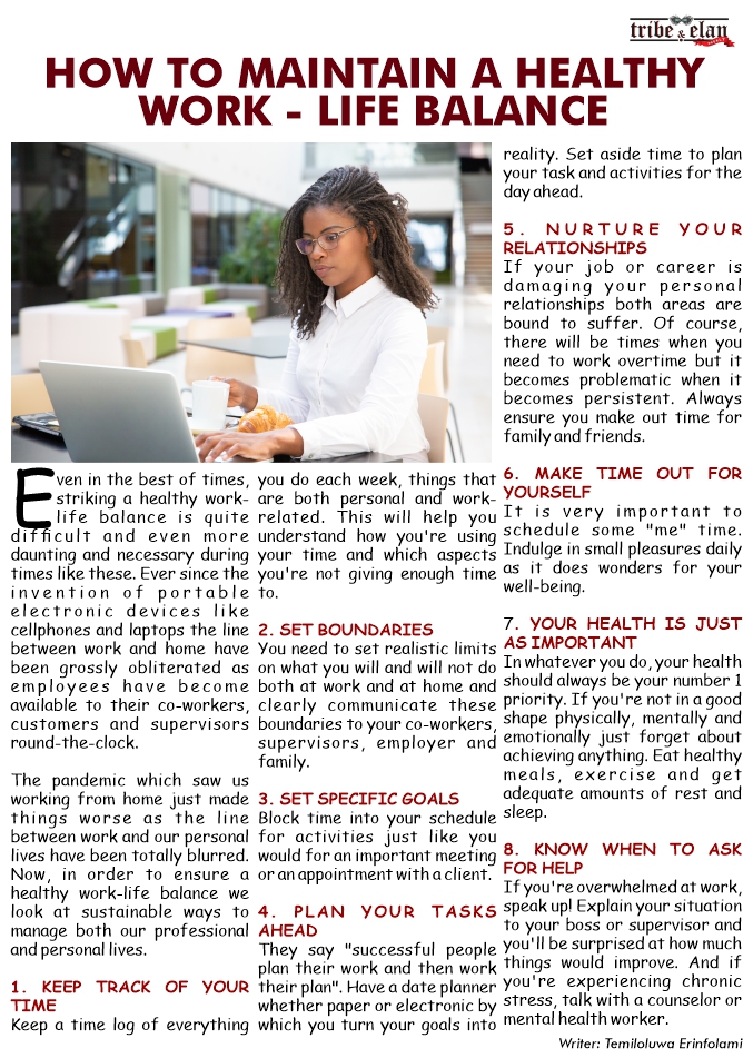 Even in the best of times, striking a healthy work-life balance is quite difficult and even more daunting and necessary during times like these. Ever since the invention of portable electronic devices like cellphones and laptops the line between work and home have been grossly obliterated as employees have become available to their co-workers, customers and supervisors round-the-clock.