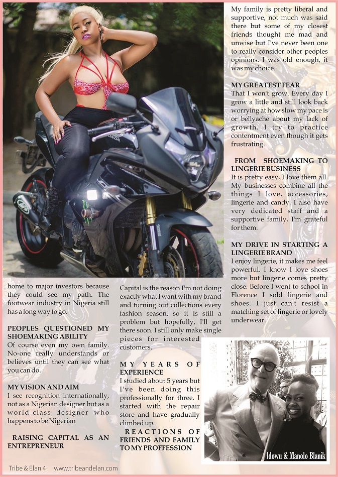 In this feature with Moram Musa , Idowu takes us into her worlds of glamour as a lingerie expert – choices beneath  & not so glamourous world of Adeyoolas Rehab shoemaking .