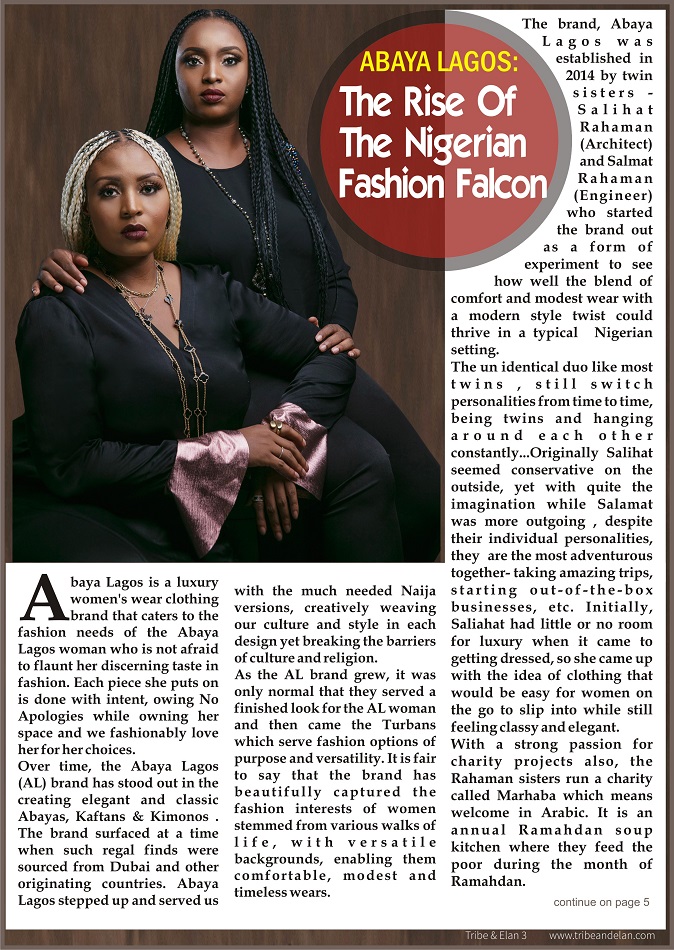 The brand, Abaya Lagos was established in 2014 by twin sisters –Salihat Rahaman (Architect ) and Salmat Rahaman (Engineer) who started the brand out as a form of experiment to see how well the blend of comfort and modest wear with a modern style twist could thrive in a typical Nigerian setting. With a strong passion for charity projects also, the Rahaman sisters run a charity called Marhaba which means welcome in Arabic. It is an annual Ramahdan soup kitchen where they feed the poor during the month of Ramahdan.