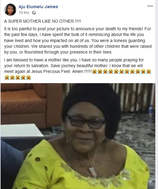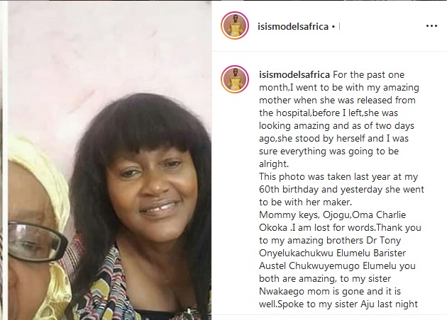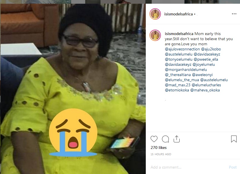 Its not a very good time at the moment for Nigeria’s Next Top Model Scout and Isis Models Model Agent – Joan Okorodudu as she mourns the passing of her dear mother .