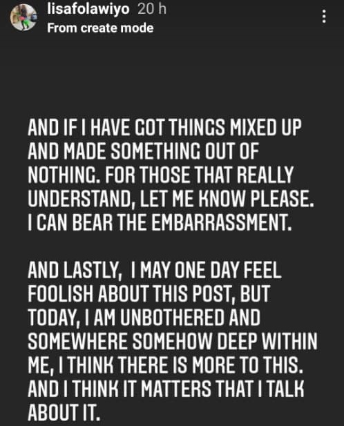 Although she had much more to say prior to these uploads in her instastory, She also went on to say…