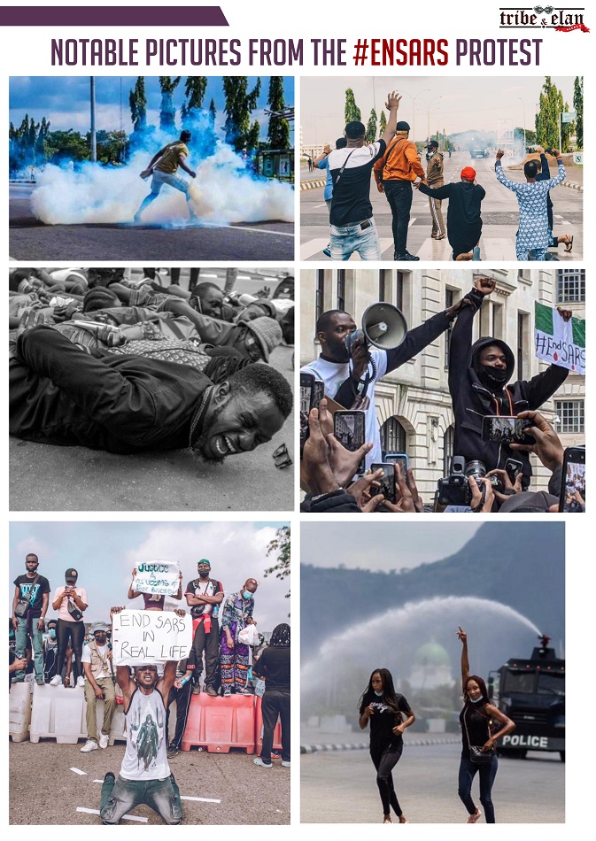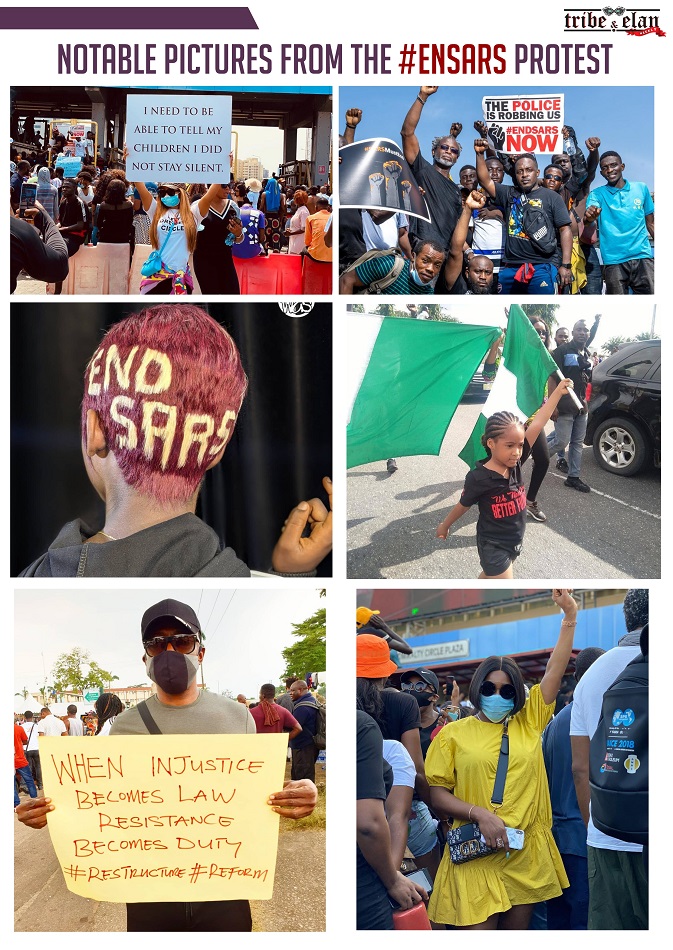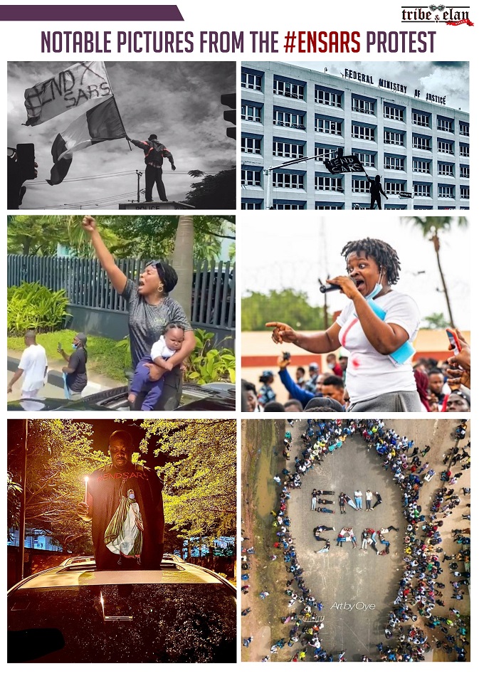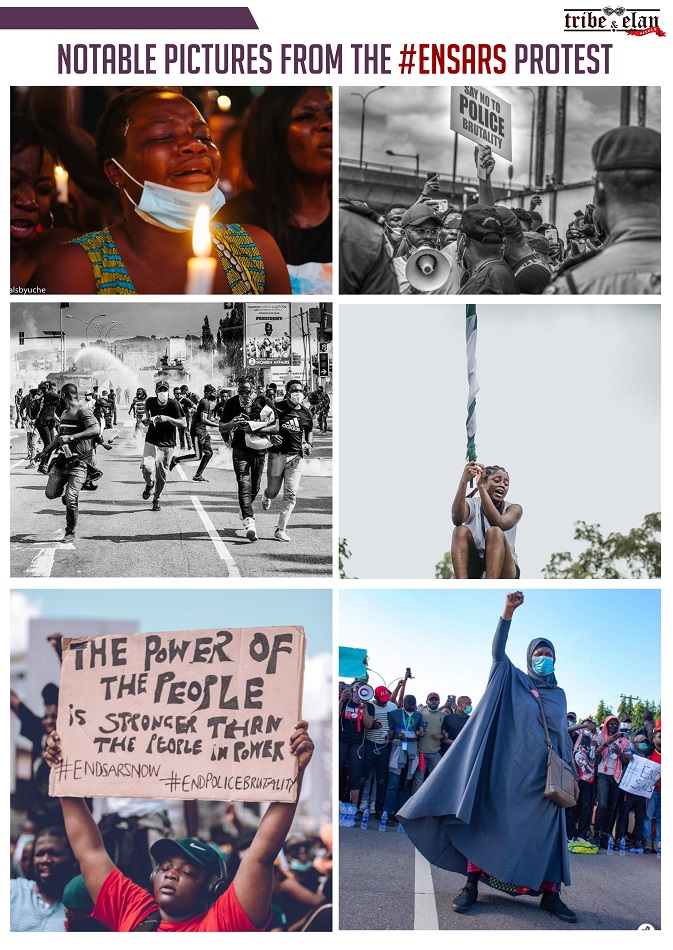 The protest which has now not just spread across the country , also has strong presence in UK , USA, Canada , China etc . Most touching during the protest, are the recounts of the innocent victims who were cut short in the prime of their lives . From Chijoke – whose father sold his property , only to be told to go fish for his son’s body in a river full of dead bodies to the Girl on the Eagle – who had lost 3 of her brothers to the trigger happy policemen …..the stories of sorrow seemed endless . As we go into the 7th day of the protest , Find below some of the Iconic moments which document the magnitude and reflect deep sated anger of Nigerians not only on End Sars but for a better tomorrow for all . As the struggle for survival in Nigeria has reached a feverish pitch .