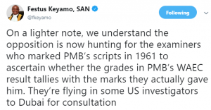 PDP members are flying in US investigators because of Buhari’s 1961 WAEC Results –Keyamo