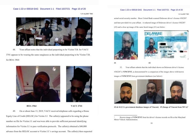 Mr Vincent had obtained Delaware and North Carolina driver’s licenses, providing personal information of two victims who resided in Nebraska and Missouri, respectively. Documents obtained from U.S. financial institutions also indicated that surveillance images of transactions matched that of Mr Vincent.