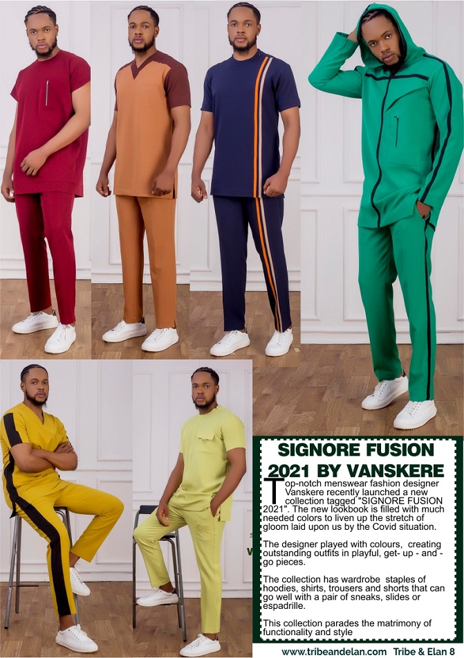 Top-notch menswear fashion designer Vanskere recently launched a new collection tagged “SIGNORE FUSION 2021”. The new lookbook is filled with much needed colors to liven up the stretch of gloom laid upon us by the Covid situation. The designer played with colours, creating outstanding outfits in playful, get- up – and – go pieces. The collection has wardrobe staples of hoodies, shirts, trousers and shorts that can go well with a pair of sneaks, slides or espadrille.