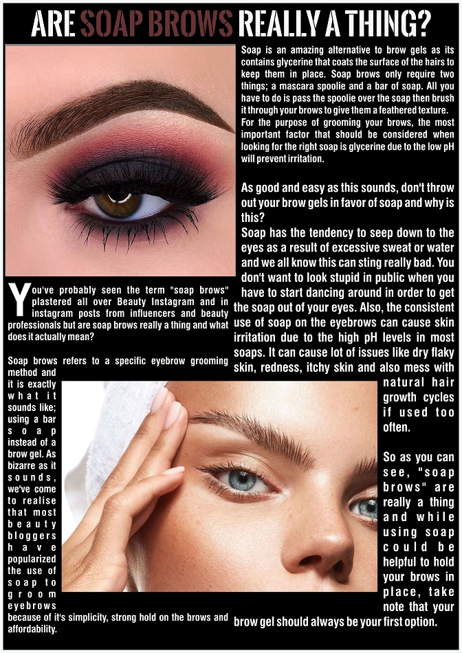 So as you can see, “soap brows” are really a thing and while using soap could be helpful to hold your brows in place, take note that your brow gel should always be your first option.