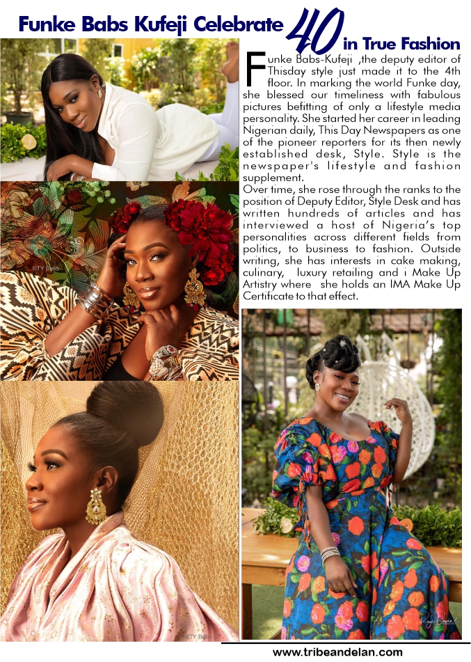 Funke Babs-Kufeji ,the deputy editor of Thisday style just made it to the 4th floor. In marking the world Funke day, she blessed our timeliness with fabulouspictures befitting of only a lifestyle media personality. She started her career in leading Nigerian daily, This Day Newspapers as one of the pioneer reporters for its then newly established desk, Style. Style is the newspaper’s lifestyle and fashion supplement.