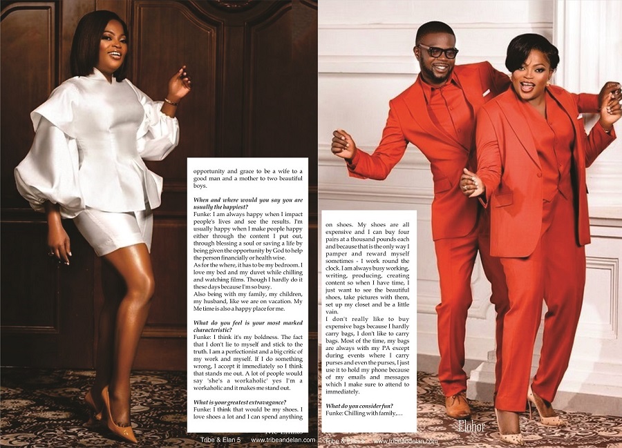 Funke: I think that would be my shoes. I love shoes a lot and I can spend anything on shoes. My shoes are all expensive and I can buy four pairs at a thousand pounds each and because that is the only way I pamper and reward myself sometimes – I work round the clock. I am always busy working, writing, producing, creating content so when I have time, I just want to see the beautiful shoes, take pictures with them, set up my closet and be a little vain.