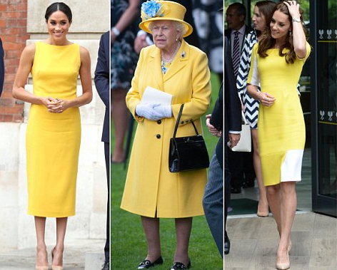 Though she is not the first member of the house of Windsor to appear in a yellow outfit, as Kate (Duchess of Cambridge) and the Queen herself has graced events in bright yellow outfits.