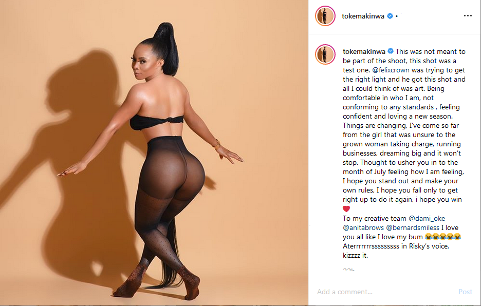 Yes , social media sensation and you tuber – Toke Makinwa has a Happy New Month for her fans as well as haters this month of July .