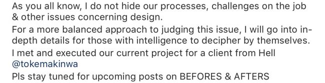 Sandra Edoho decided to respondvia her Instagram page, calling Toke a client from hell.