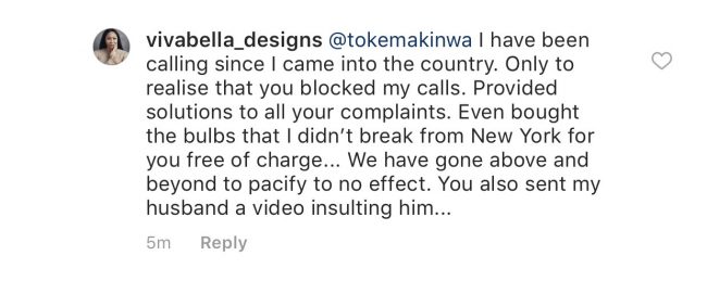 Expectedy, Toke felt riled and went straight to Sandra Edoho’s Instagram to page to respond thus leading to an avalanche of responses between them. Toke on one hand added that she tried her best to reach out but was met with rude customer service.